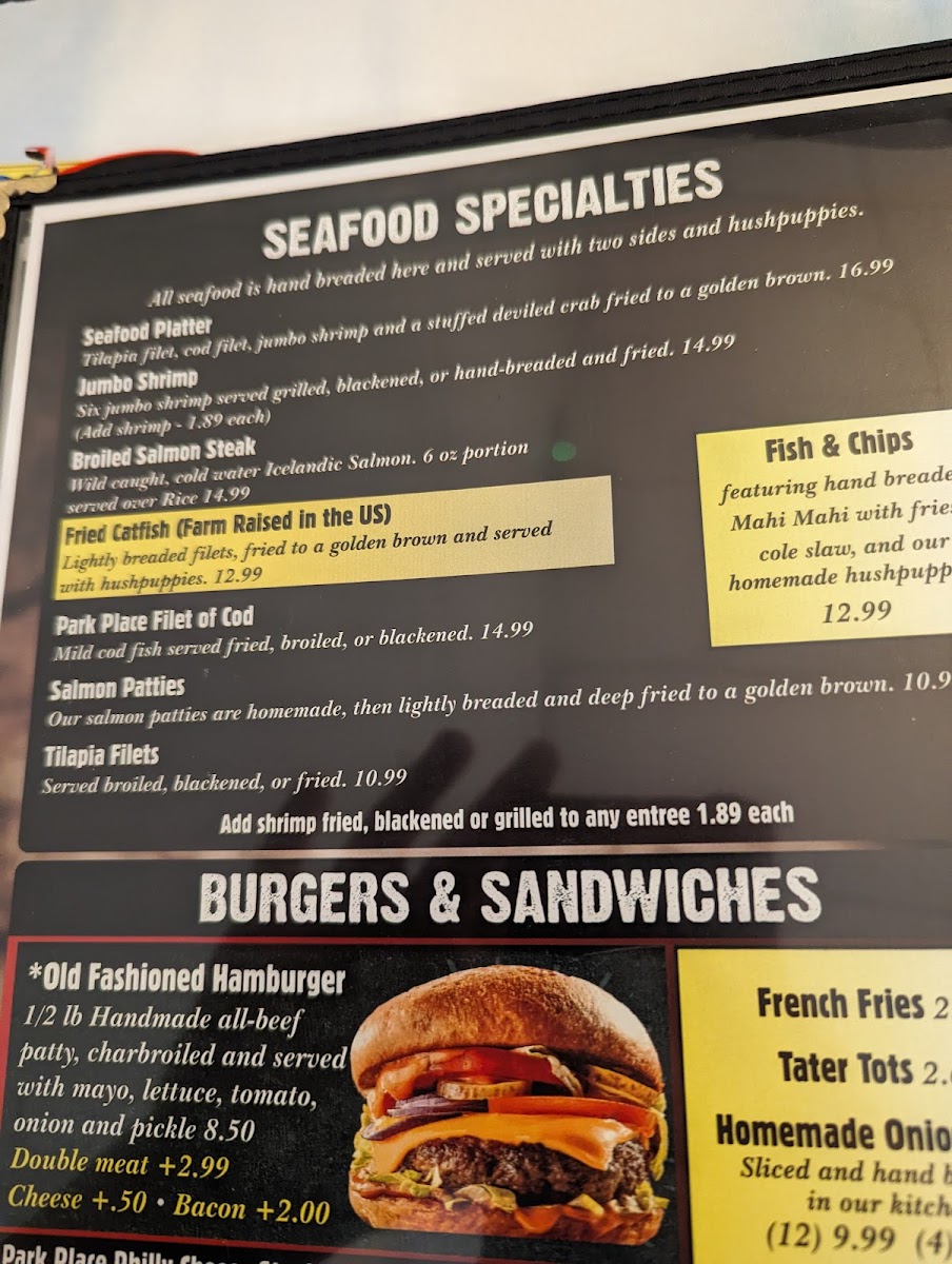 We grind our own beef at Park Place. Fresh and lean and served with your choice of grilled onions or peppers.